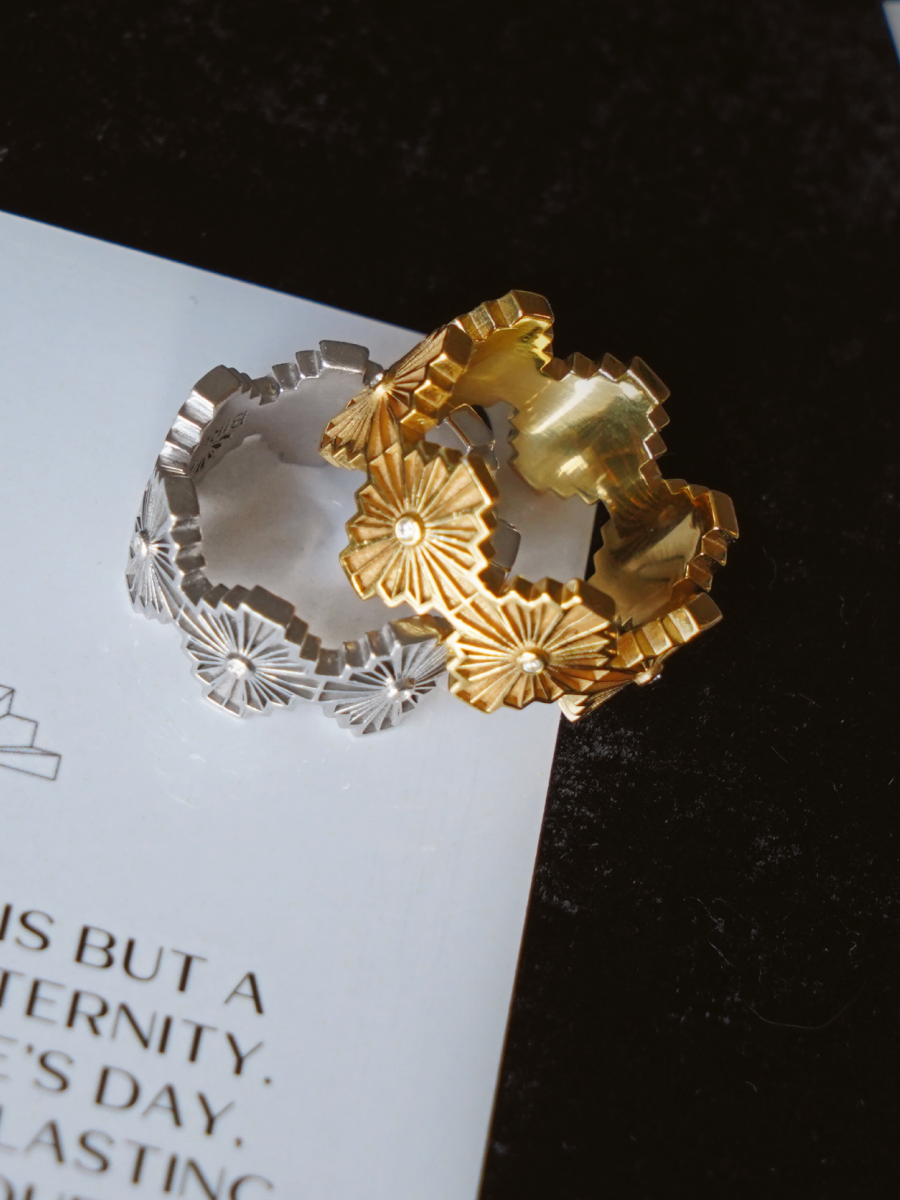 14K micron gold plated 925K silver ring with crystals gemstones,