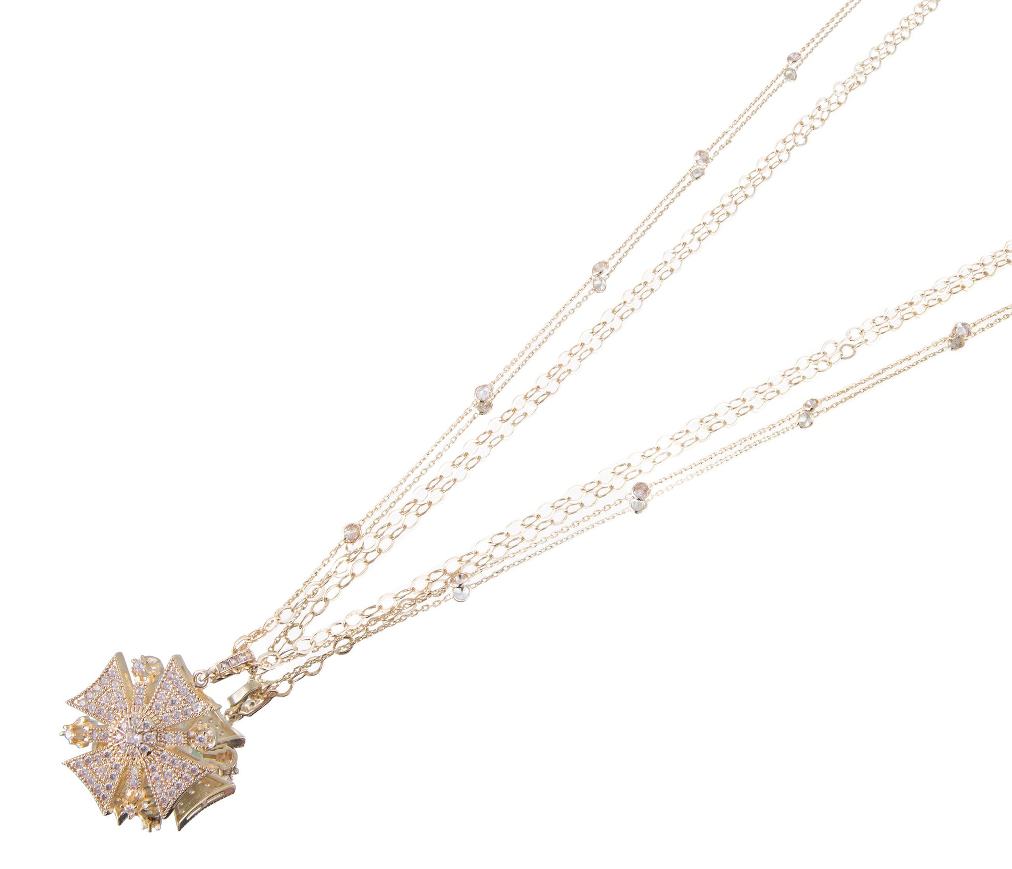 14K gold plated bronze dore charm with crystals on 925 silver chain