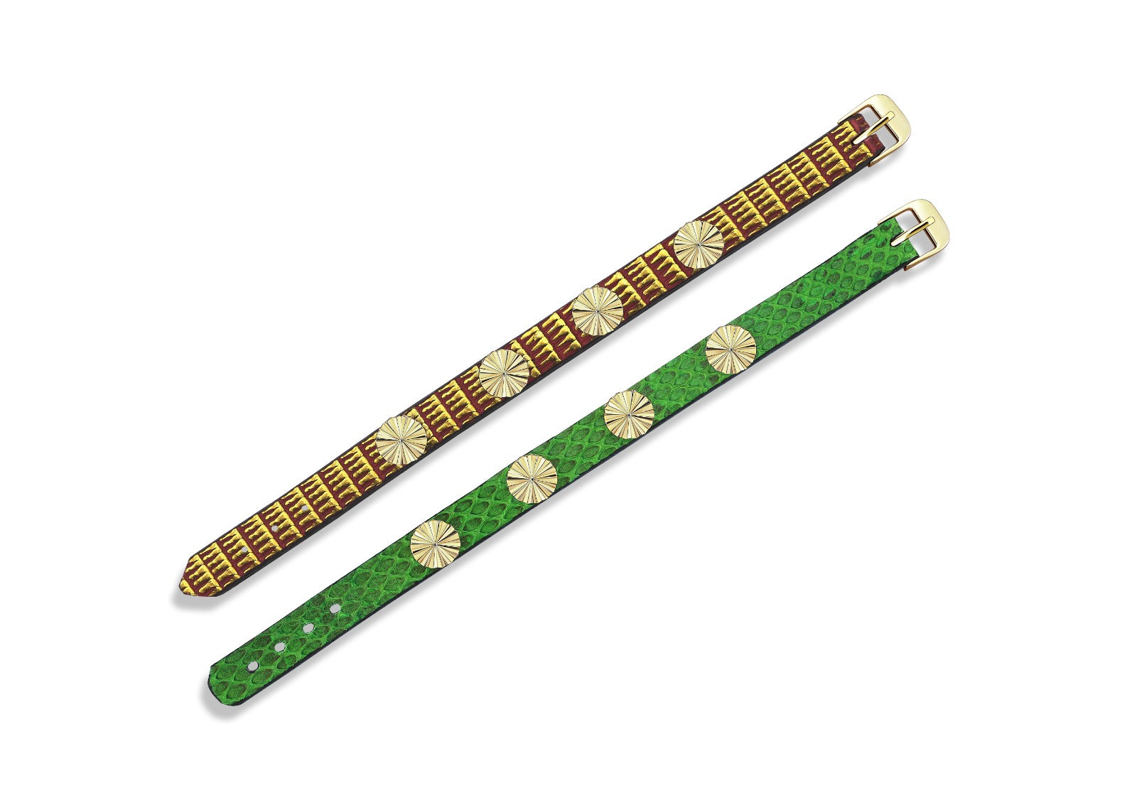 100% leather bracelet with adjustable size belt buckle adorned with nickel free,