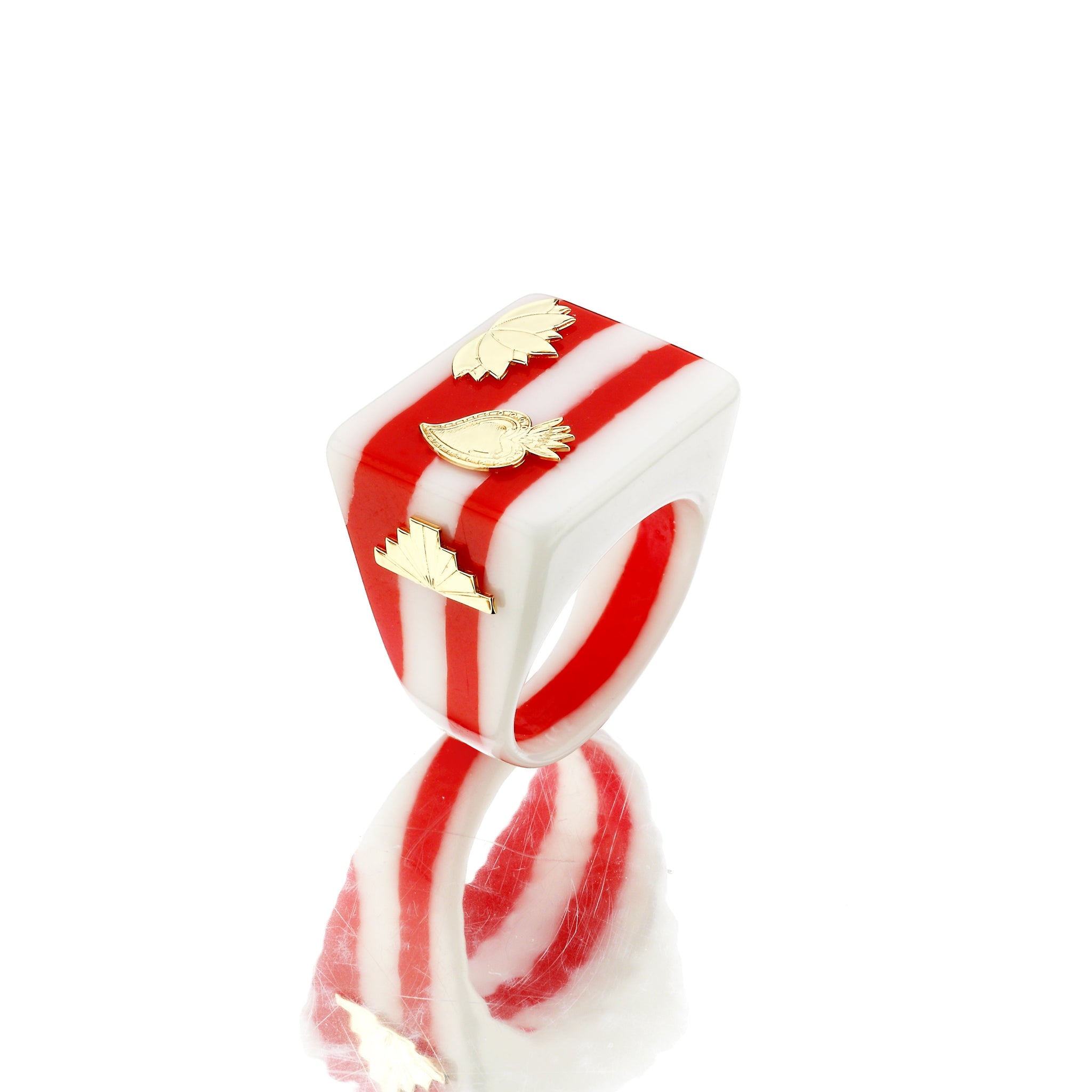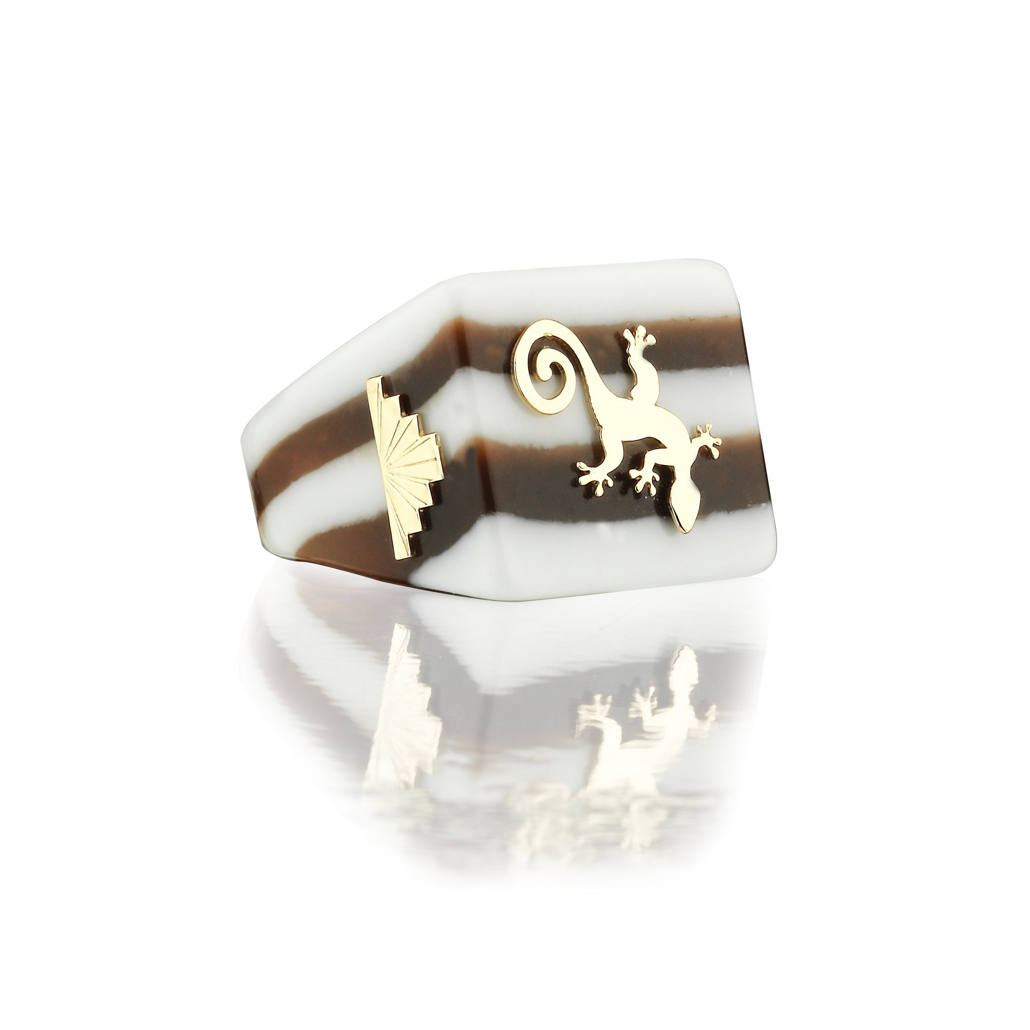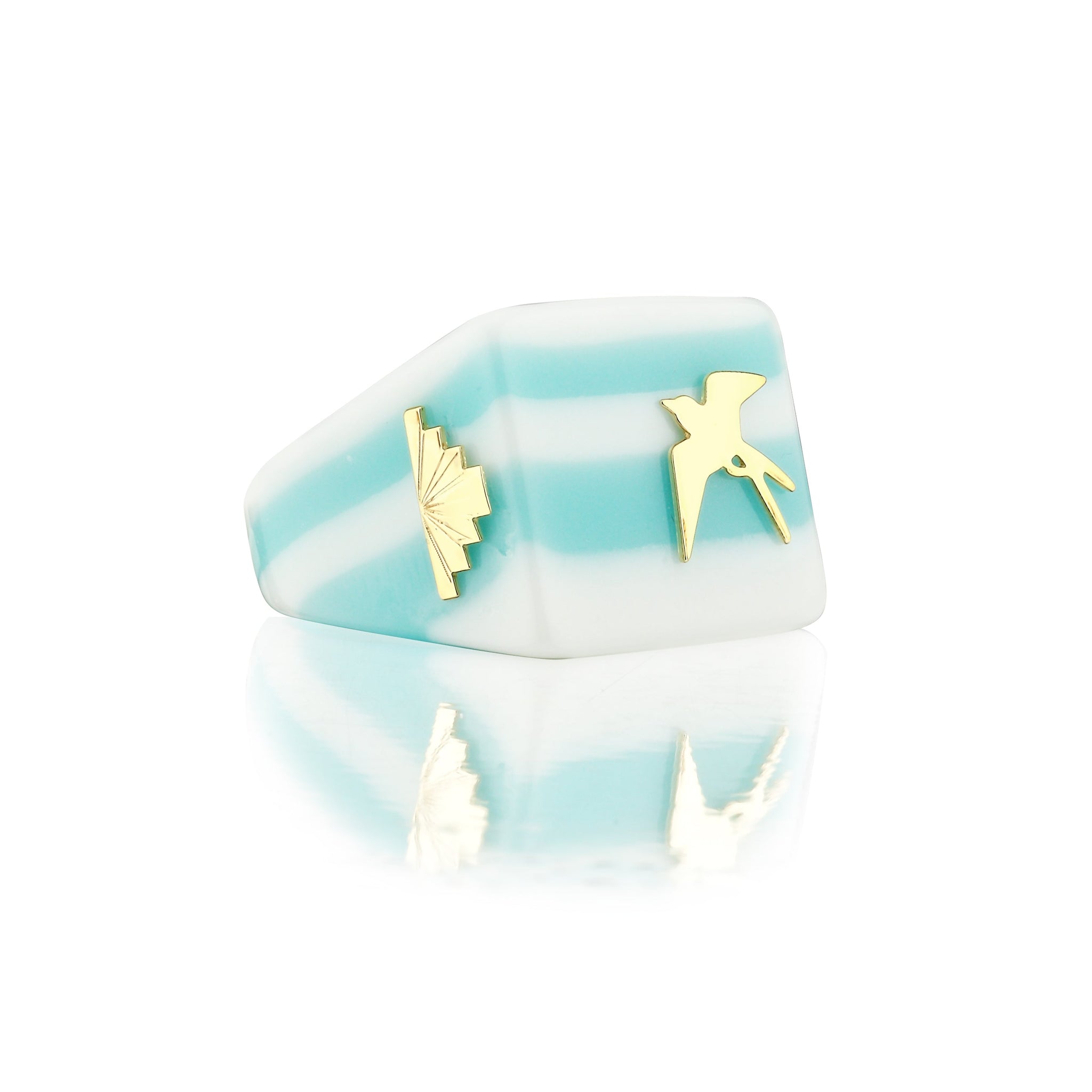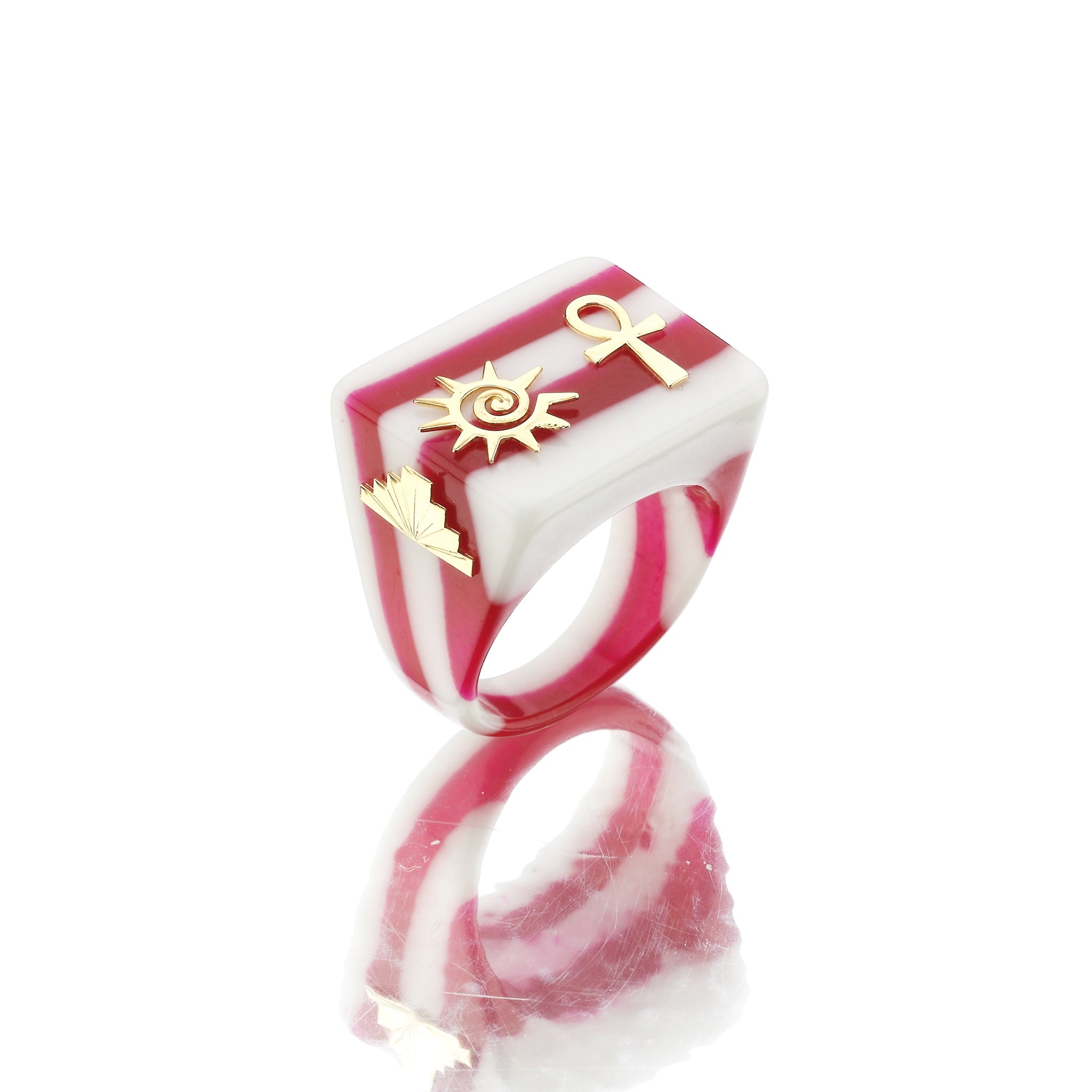 Mica ring adorned with 18K gold plated 925 silver symbols