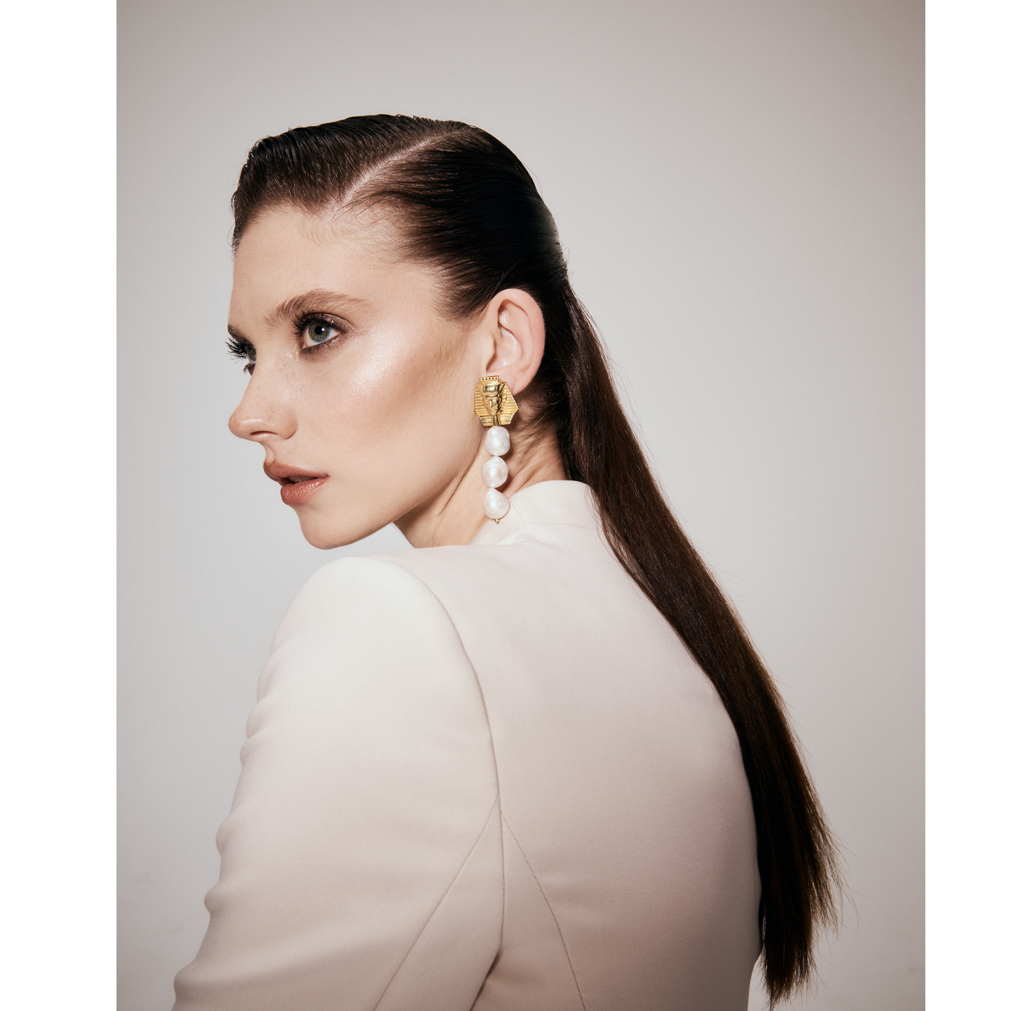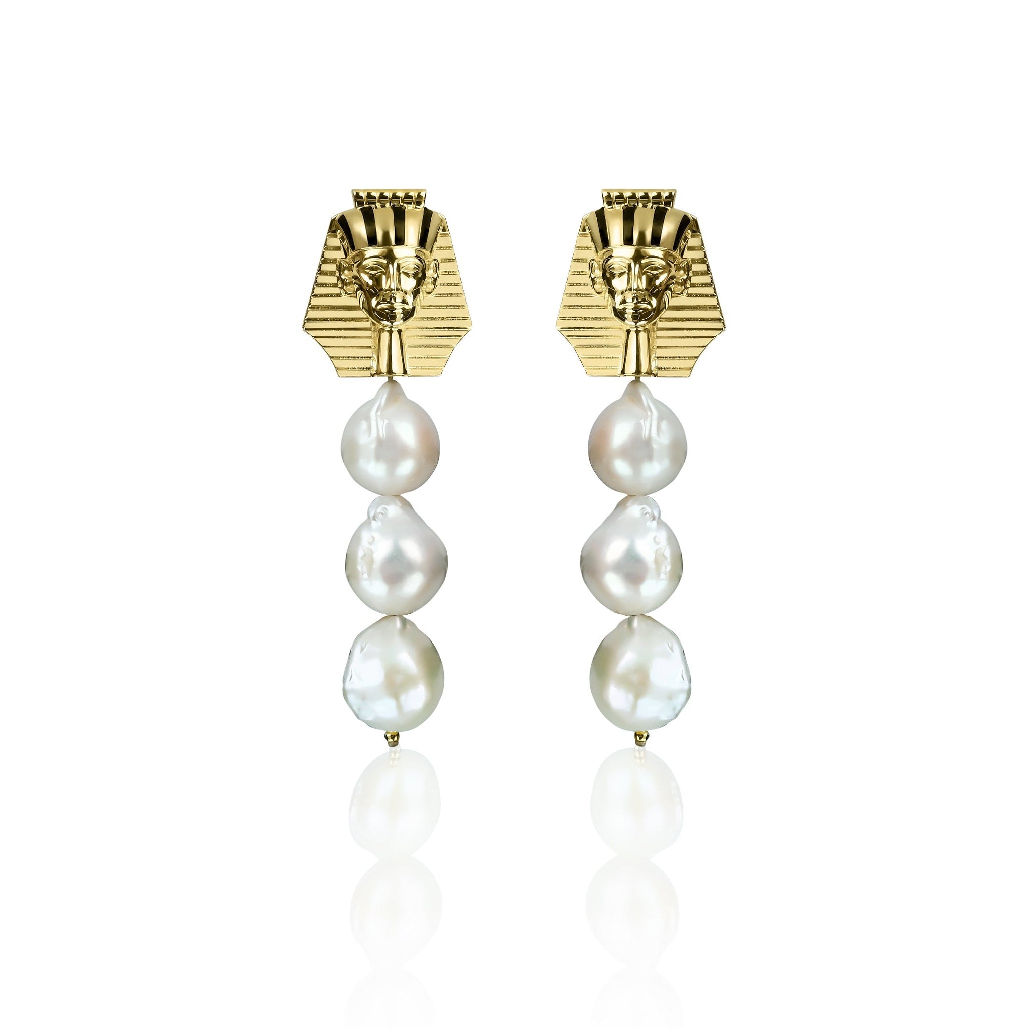 925 silver 14K gold plated earring adorned with enamel and baroque pearl,